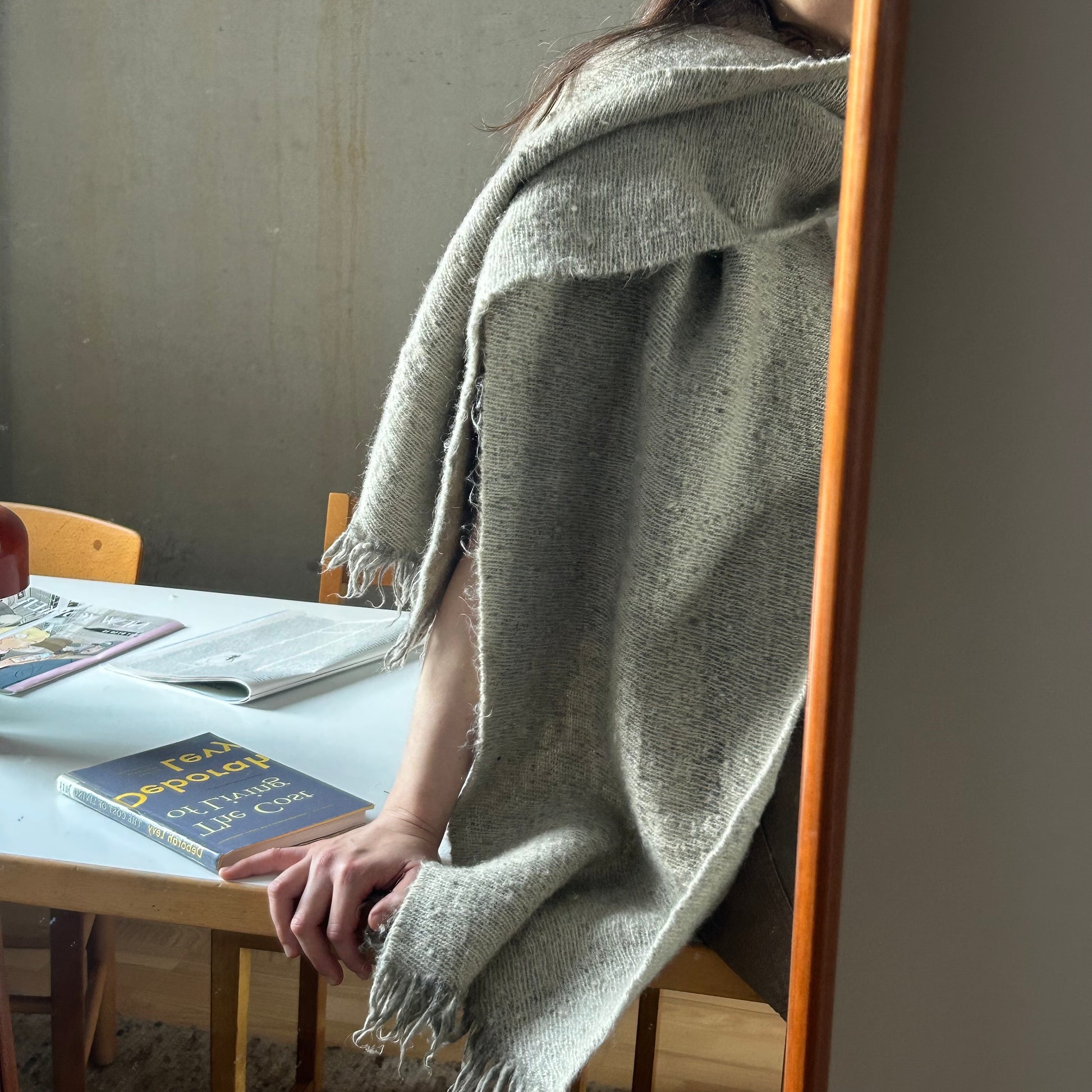 Handwoven scarves made from mohair and Spelsau lambswool with all fibres locally sourced from Det Vilde Spinderi on northern Sjælland in Denmark.
